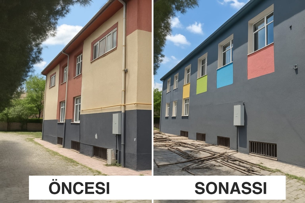 Okul dış cephe mantolama ve boya işimizi hayırseverlerimizin desteği ile bitirdik.Tüm öğrencilerimizin daha nezih bir ortamda eğitim görmeleri için okulumuzu modern bir görüntüye kavuşturduk.İlçemize öğrencilerimize okulumuza hayırlı olsun...